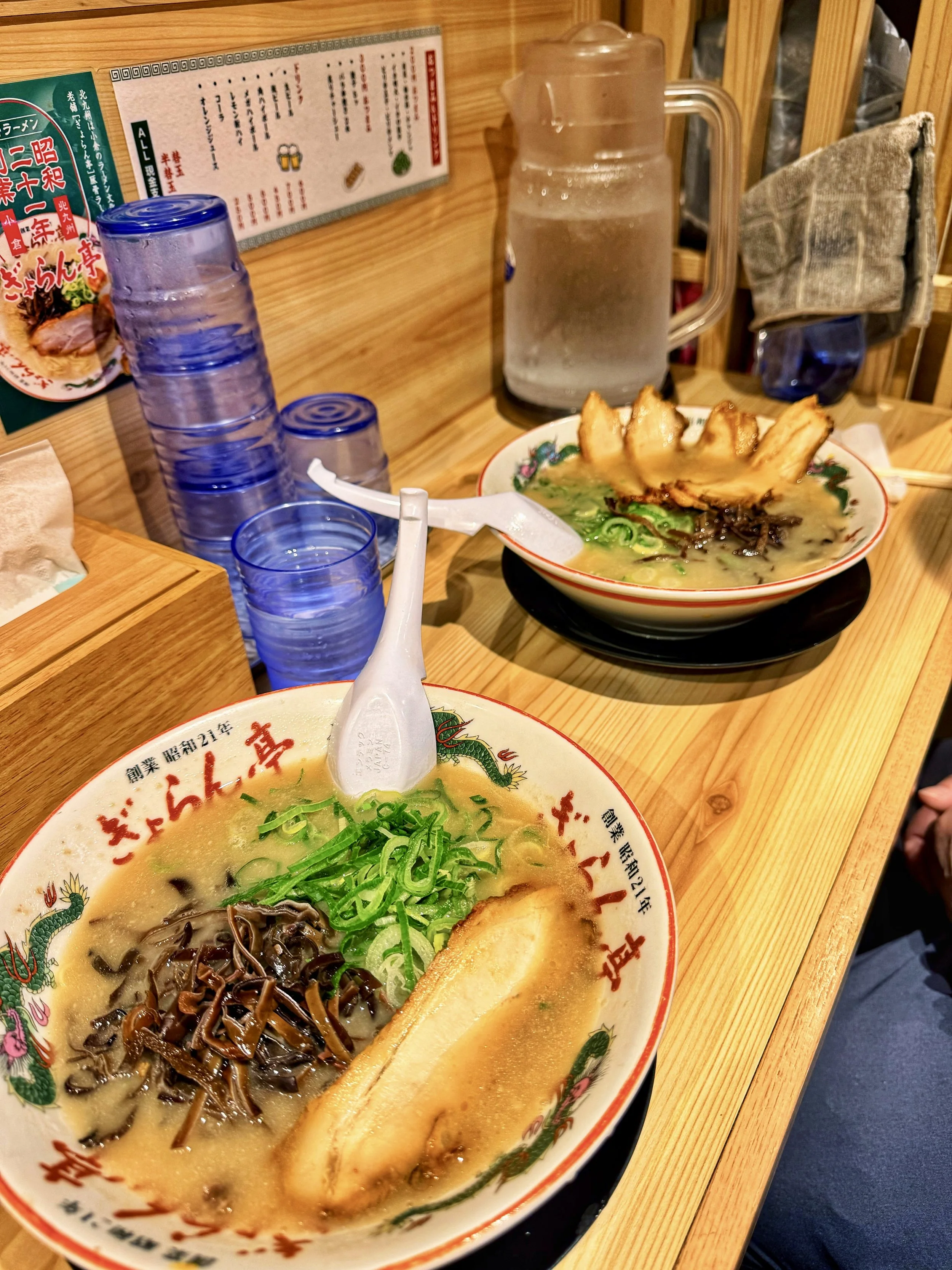 Tonkotsu Ramen: By now, the rest of the world has been introduced to Japanese style ramen. Fukuoka is the birthplace of the well-known creamy pork-based tonkotsu ramen. You may have heard of Ichiran, headquartered in Fukuoka and world famous, its made its way all the way to New York. For the full tourist experience, we attempted to go to Ichiran several times, but the lines were ridiculously long and we hated to wait when we knew there are plenty of great Hakata style ramen on every corner. We ended up at Gyorantei, an institution since 1948.