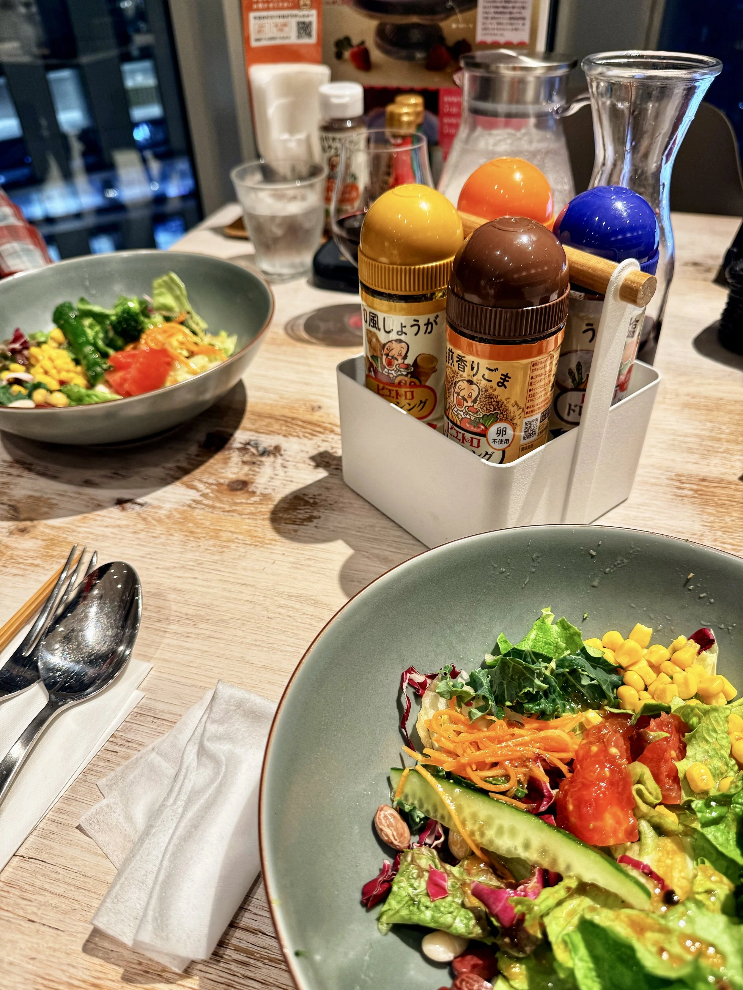 Pietro: It was a fun surprise for Akiko to discover Pietro - her favorite salad dressing - is from Fukuoka! Pietro is a japanized Italian restaurant (loosely comparable to an Olive Garden in the States in style and price point???). Per the website, “The dressing was created to encourage customers—particularly children—to eat more vegetables by blending Italian vinaigrette techniques with bold Japanese flavors.” I think the tactic worked! Back in the 80s, Akiko’s mom discovered this salad dressing and been a family favorite ever since. It can be purchased in most Asian supermarkets in the States as well. Of course we had to eat at the restaurant. For Yoko. 😉