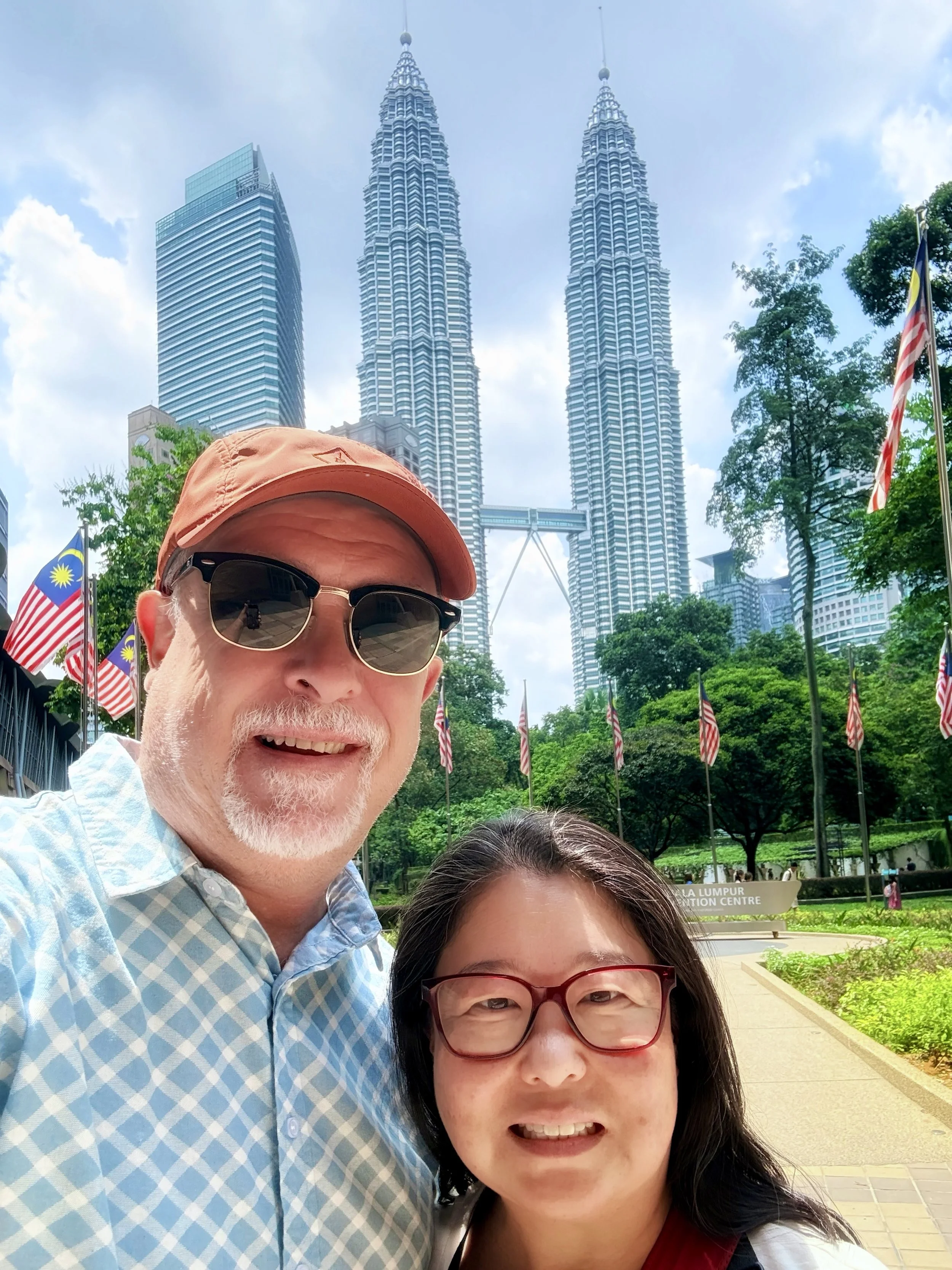 At KLCC Park with Petronas Twin Towers behind us. Kuala Lumpur, Malaysia.