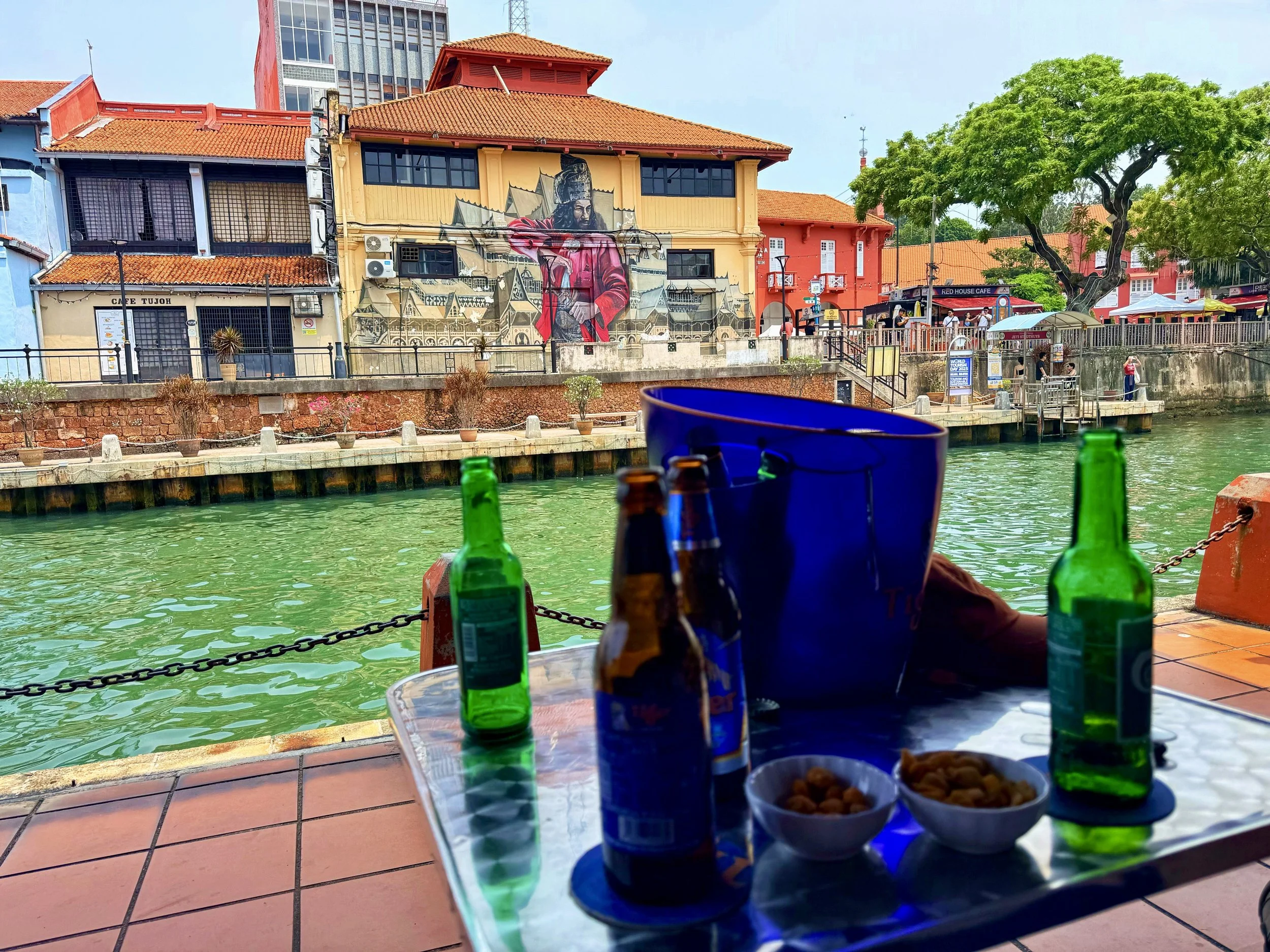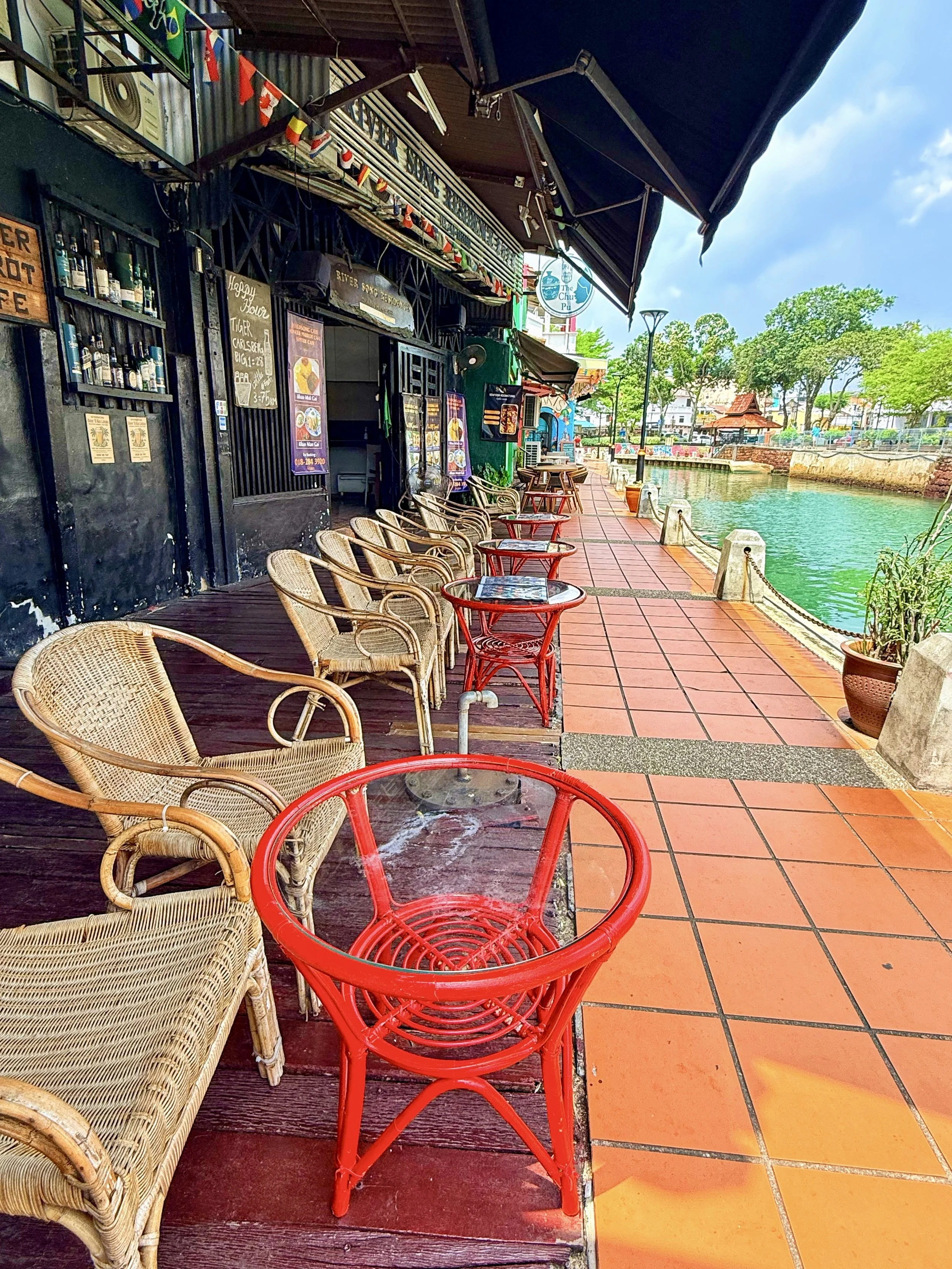 We will miss retired aunty Flora from Singapore and her niece, Sandra. Many great wishes to Rajush and Roxanne on their new cocktail bar, Arkib, and inviting us to the inaugural day drinking party complete with a DJ and other local bartenders. We got to meet many of their friends who drove down from Kuala Lumpur to celebrate. Gee, the Hard Rock Cafe GM gave us great restaurant recommendations. Every morning on our riverside walk, "Bit Bit"--sitting outside his front door--stopped us to give us unsolicited advice on how to prolong our stay in Malaysia indefinitely. We enjoyed listening to Luke's acoustic sets many nights at Geographer's Cafe, the best people watching and drinking spot in town. Karen--the former Cathay Pacific flight attendant married to Roland--the Nigerian engineer performing music on weekends were a hoot! She's very outgoing. By the end of the night, she had us practically moving to Melaka. "I know of a house that's for sale!" And, eternally grateful for the chill vibes and conversation with Jackson and Toshi at the Love Music Vinyl Cafe. Their first language is truly a beautiful smile.